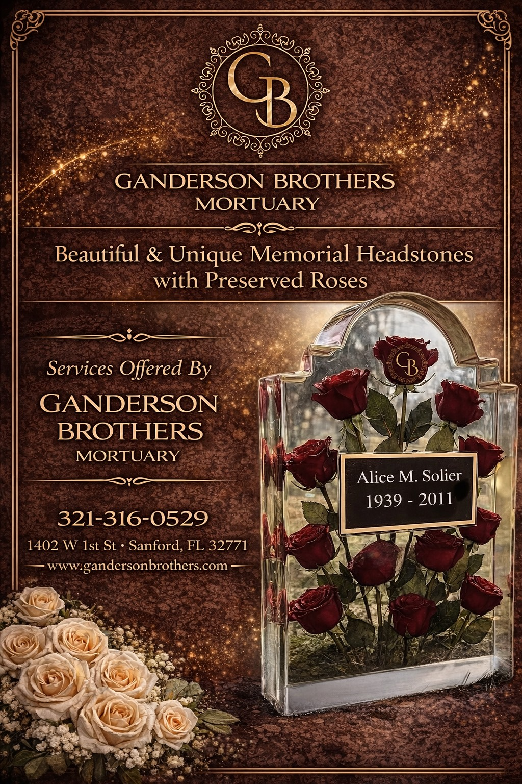Ganderson Brothers Mortuary provides complete cemetery monument and memorial solutions designed to honor life with dignity and permanence. Our services include monument and marker sales, professional installation, restoration, and long-term maintenance, all performed by trusted service partners.